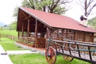 Terasa rustica este realizata din lemn masiv. Turistii pot savura aici mancaruri traditionale, preparate pe grill, chiar sub privirea lor.